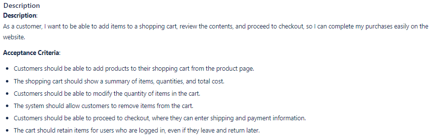 Para esta prueba, vamos a introducir “I need all issues to include acceptance criteria in their definition”. Como resultado, se nos agregan dichos criterios en las descripciones de las issues.