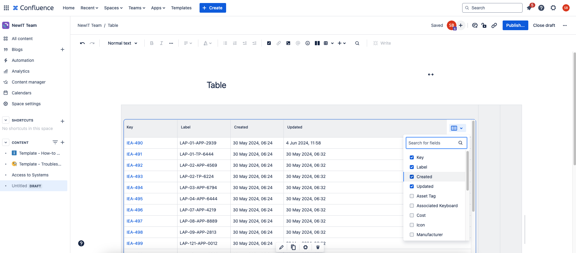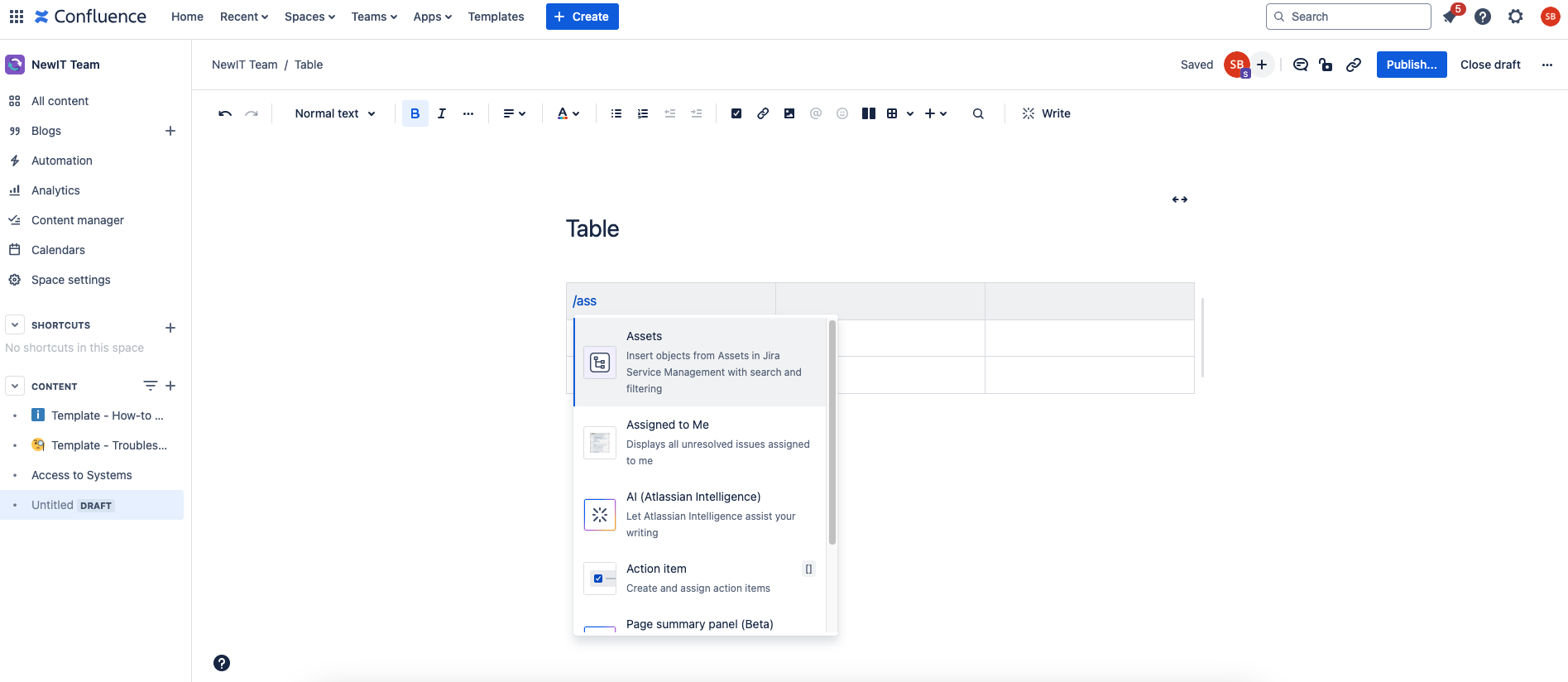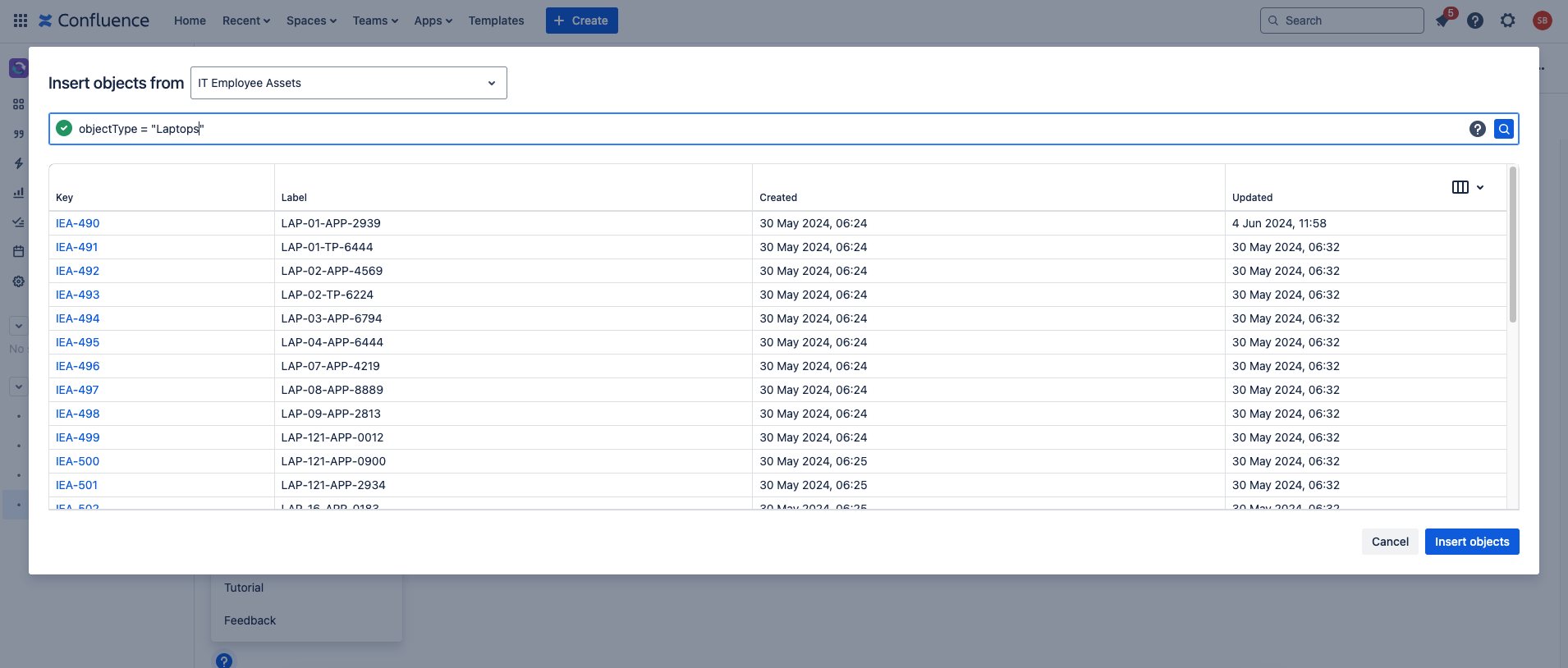Insertar nuestros objetos de Assets en tablas y páginas de Confluence es súper sencillo. Os explicamos paso a paso cómo hacerlo: