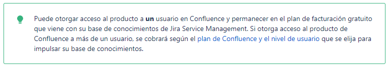 Si no tienes Confluence, como el caso que vimos anteriormente, puedes otorgar acceso solo a 1 usuario y mantener el plan gratuito de Confluence: