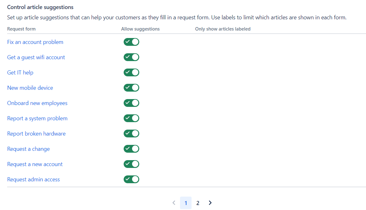 - Cuando Confluence se haya instalado correctamente, el sitio te redireccionará de nuevo a los ajustes de la Base de Conocimiento. Dentro de estos ajustes, puedes crear o linkear contenidos para que aparezcan dentro del portal, o para que sean de más fácil acceso para los agentes.