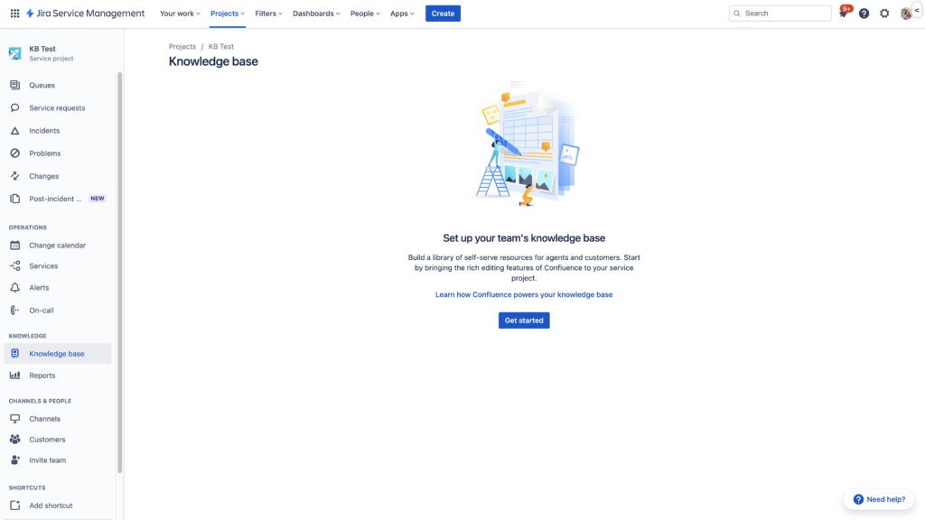Esta base de conocimiento funciona con Confluence y brinda a los agentes la capacidad de crear, leer, actualizar y eliminar artículos de conocimiento directamente en Jira Service Management. Para desbloquear esta función, tienes que agregar Confluence a tu sitio, pero no es necesario adquirirlo para poder utilizar la Base de Conocimiento nativa de Jira Service Management.