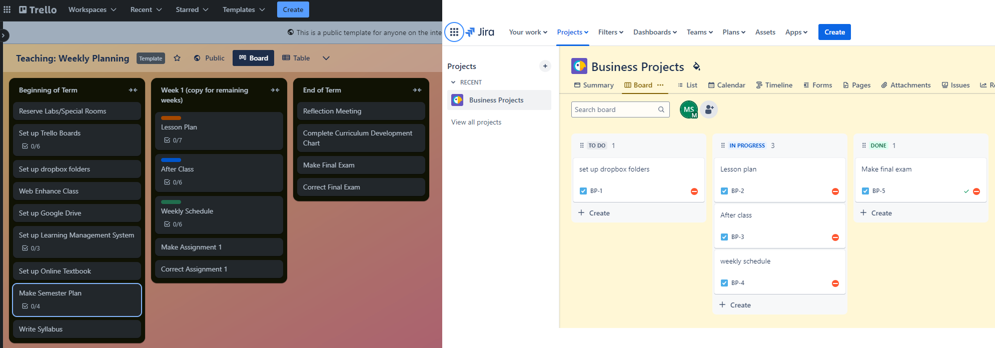 A pesar de ser herramientas con enfoques diferentes, Trello y Jira Business comparten algunas funcionalidades clave. Aunque cada plataforma tiene sus propias fortalezas y enfoques únicos, estas funcionalidades comunes proporcionan una base sólida para la gestión efectiva de proyectos: