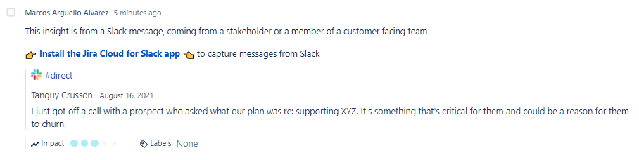 Para expandir en profundidad el argumentario de la idea podemos o añadir comentarios sobre la misma o enlazar insights (representaciones visuales de la idea a representar) como por ejemplo capturas de otras webs u otros tickets de soporte.