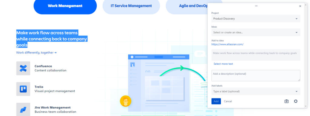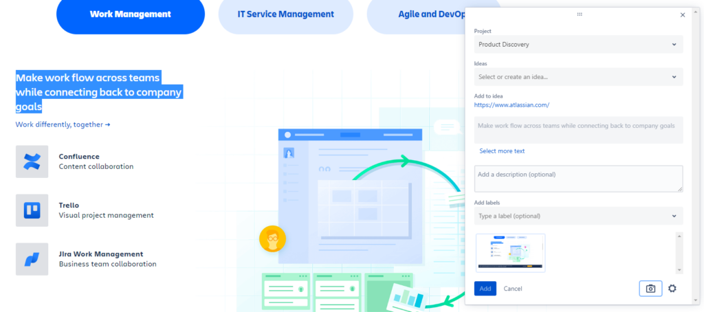 Integración desde el navegador mediante la extensión de “Jira Product Discovery”:
