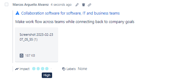 Podemos usar tanto links externos como internos (Jira Service Management) para agregarlos como insight dentro de una idea