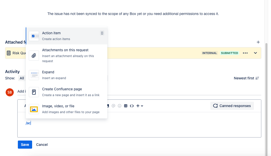 - La primera es escribir “/action item” en cualquier campo de texto enriquecido de la tarea, como descripción o comentario.